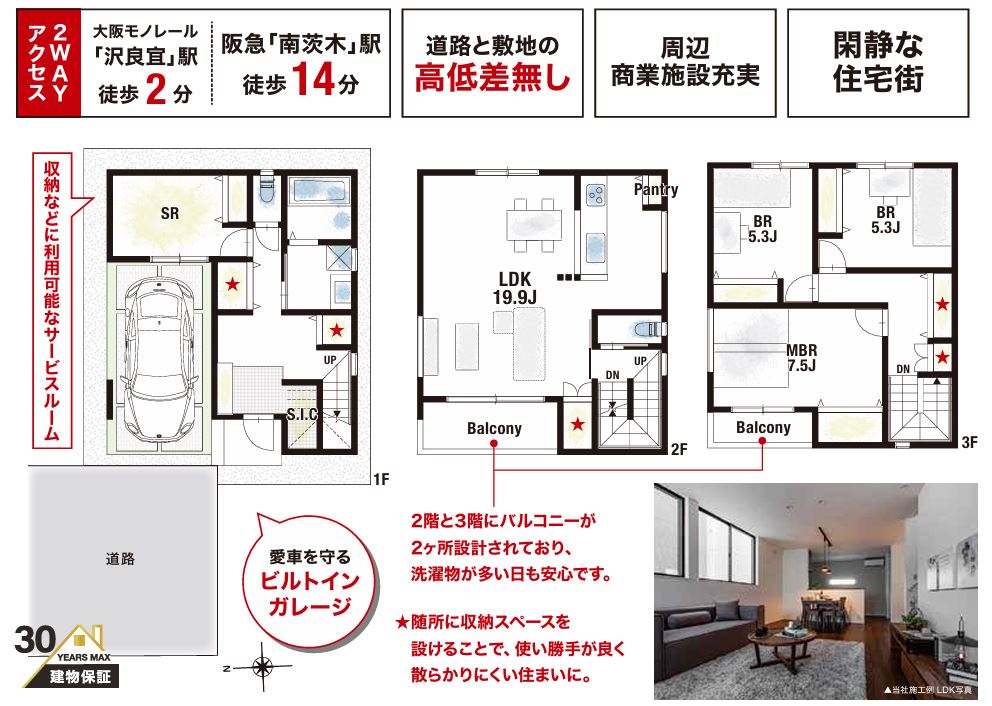 モノレール「沢良宜」駅徒歩2分 阪急「南茨木」駅徒歩14分 |